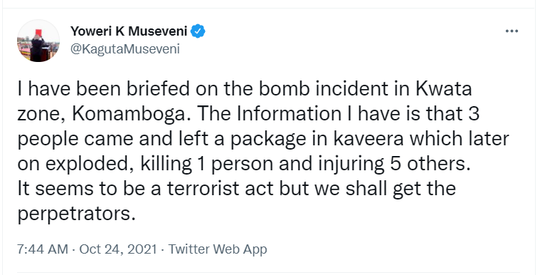 Furthermore, President Yoweri Museveni took to Twitter to confirm the attack, and he promised to catch the perpetrators.