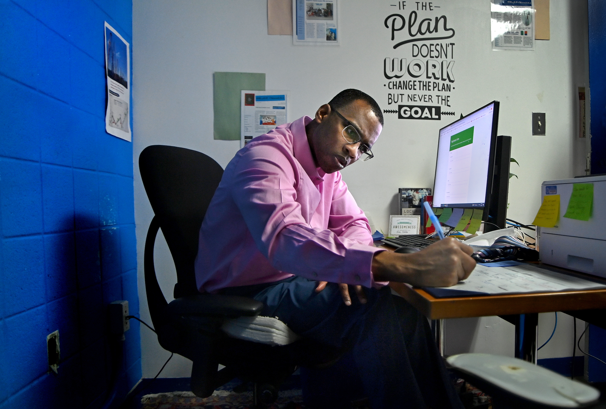 Castón sometimes is perplexed by the technology that forms the basis of his work. Sending Zoom links feels like learning a new language, and scheduling work tasks into his busy life requires the aid of two others, Darnell Savoy and KayVaughn Brown, who live in the unit.