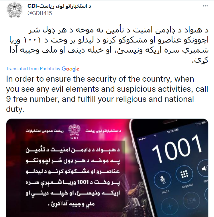 — د استخباراتو لوی ریاست-GDI (@GDI1415) October 31, 2021